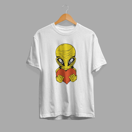 Alien With Heart Half-Sleeve T-Shirt
