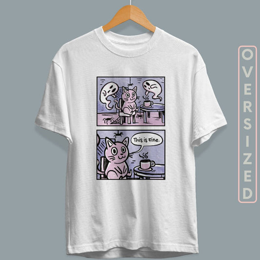 Cat In Haunted House Unisex Oversized T-Shirt